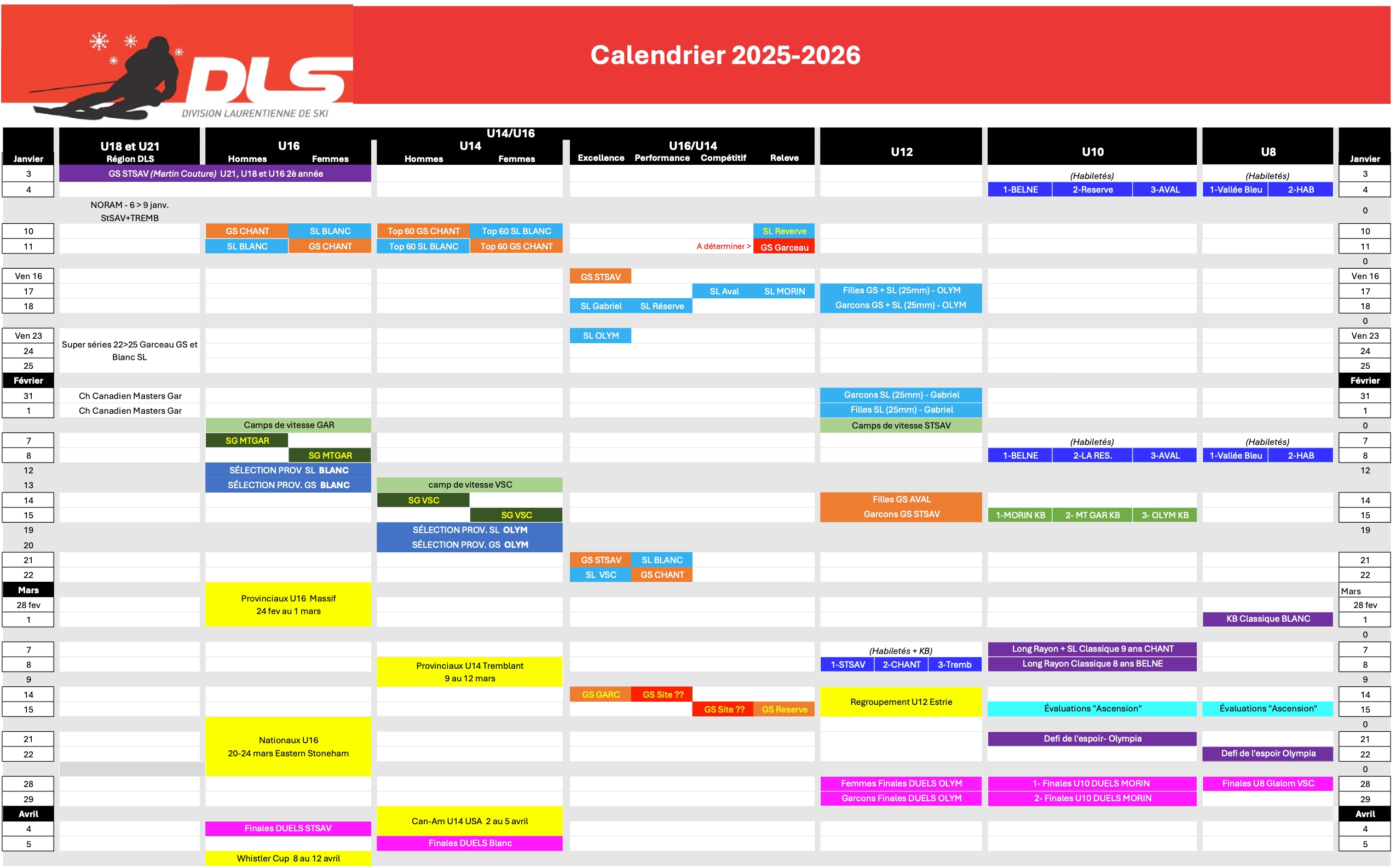 Calendrier Club Avalanche