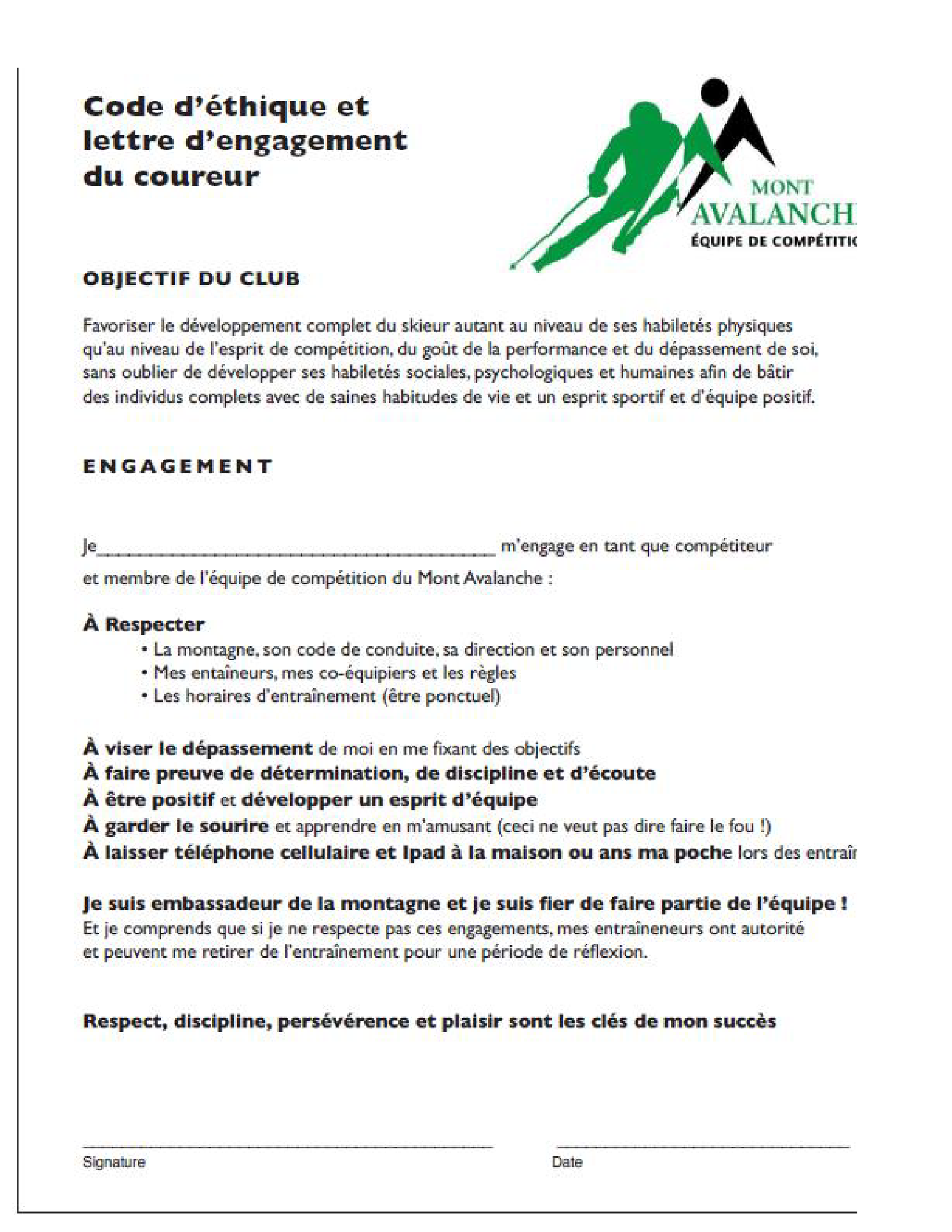 Code d’éthique et lettre d’engagement du coureur